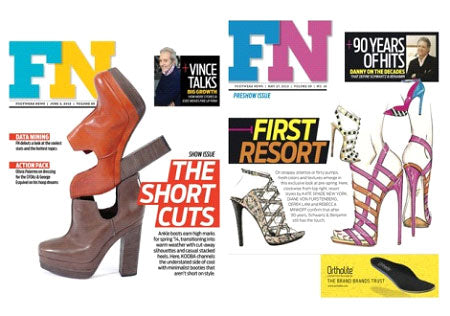 Rockwell Tharp’s Tiffany Blue Pearl Pumps Headlined in Two Footwear News Magazine Issues.