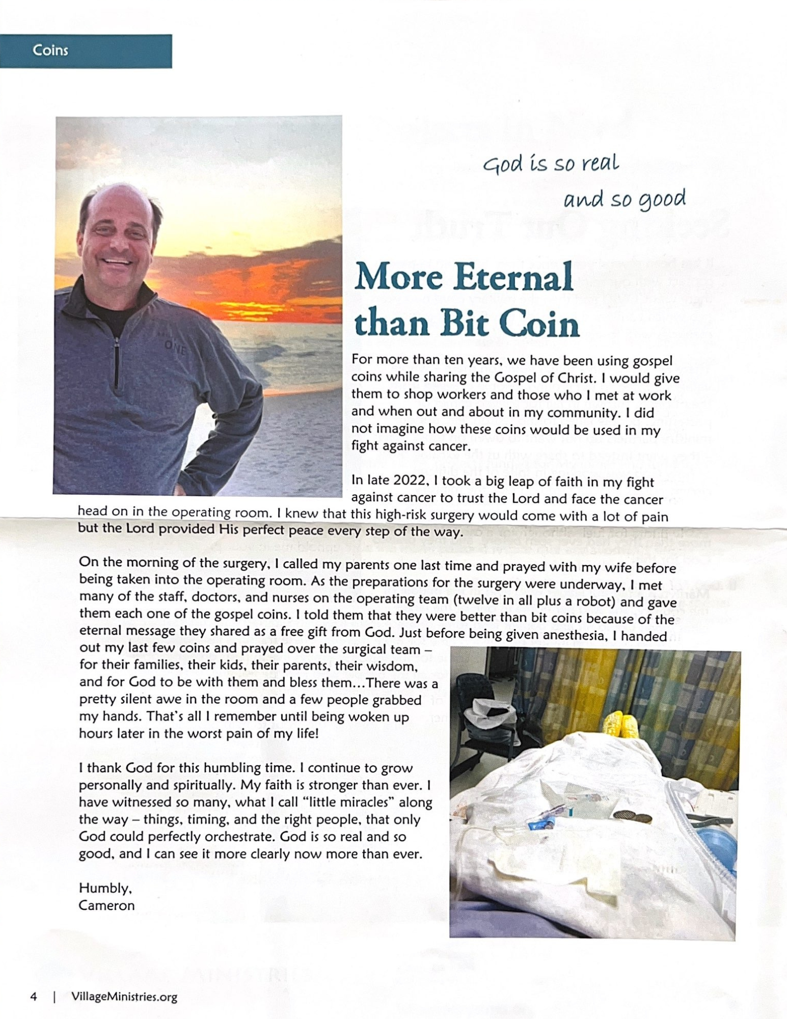 Owner Cameron Tharp shares his recent leap of Faith - choosing to face cancer head-on while sharing the Gospel of Christ through gospel coins.