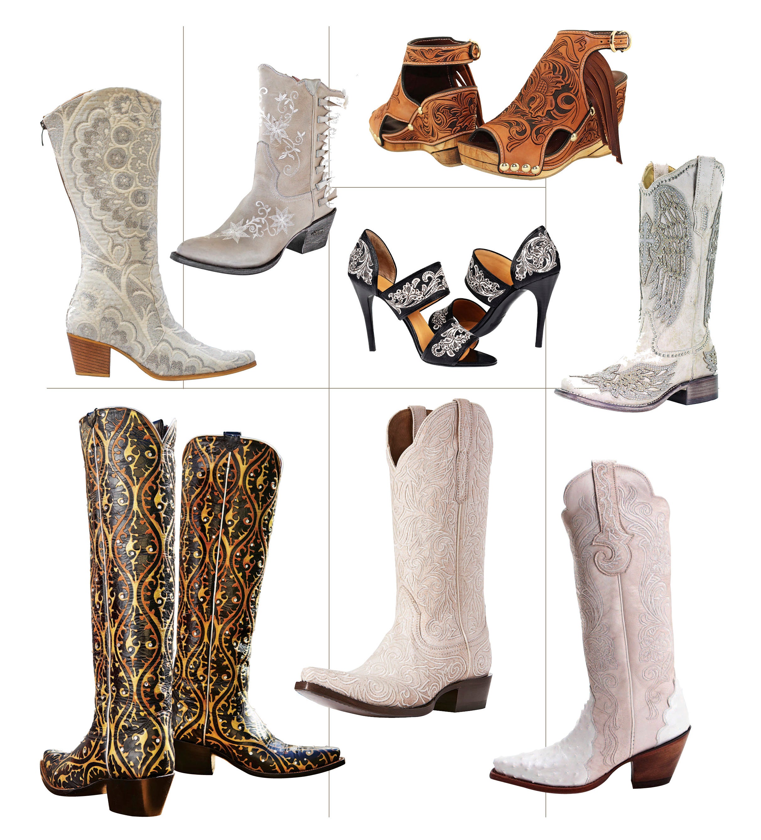 Rockwell Tharp's Bali Brocade Modern Cowboy boots (Top Left) were featured in Western Wedding: Boots. Click to read the article.