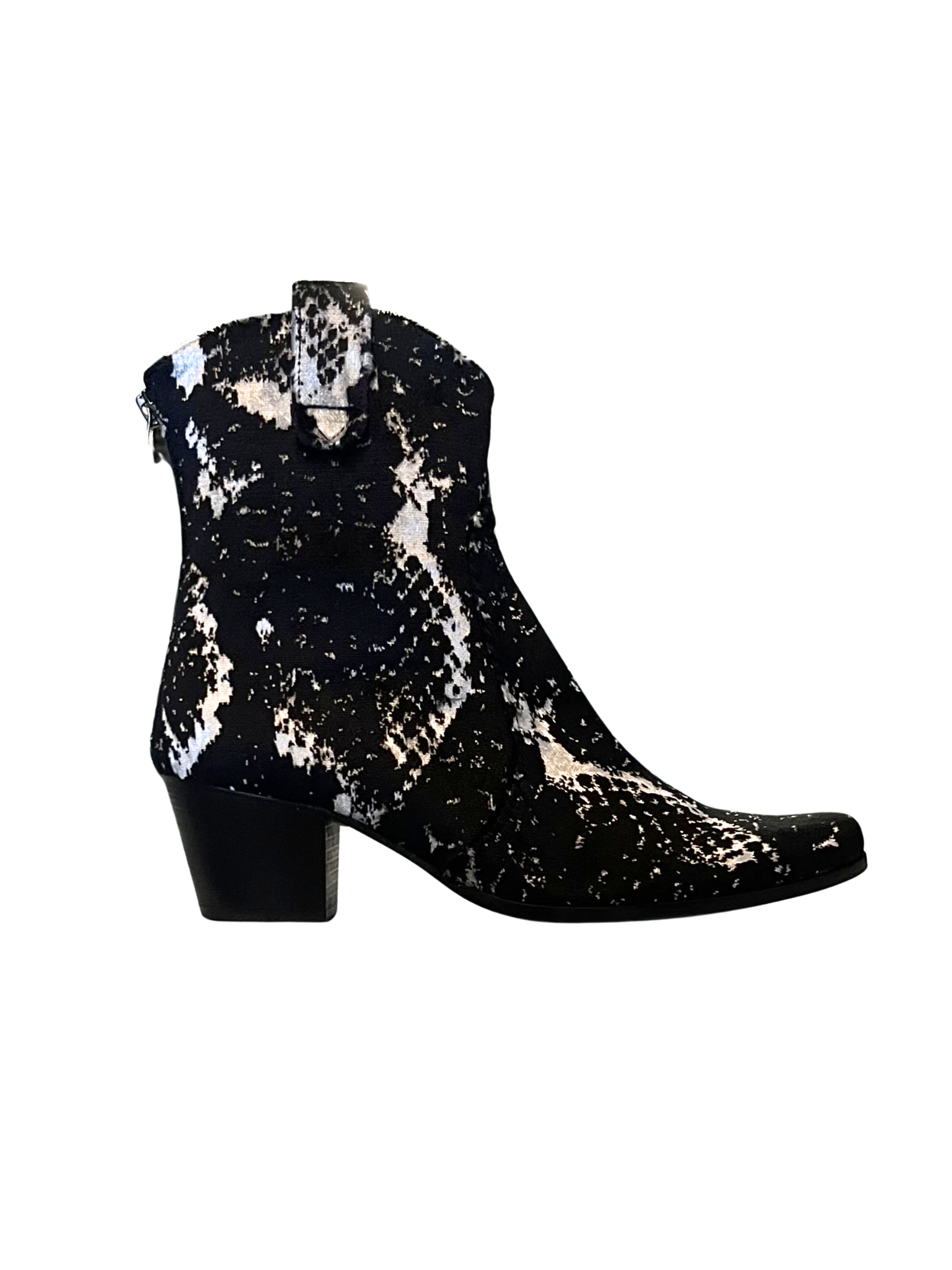 Our Teton Collection is tailored and hand-crafted just for you! Our design team searched through thousands of textiles to hand select the very best. This Black & White Crushed Velvet Bootie will help you Make Your Statement!