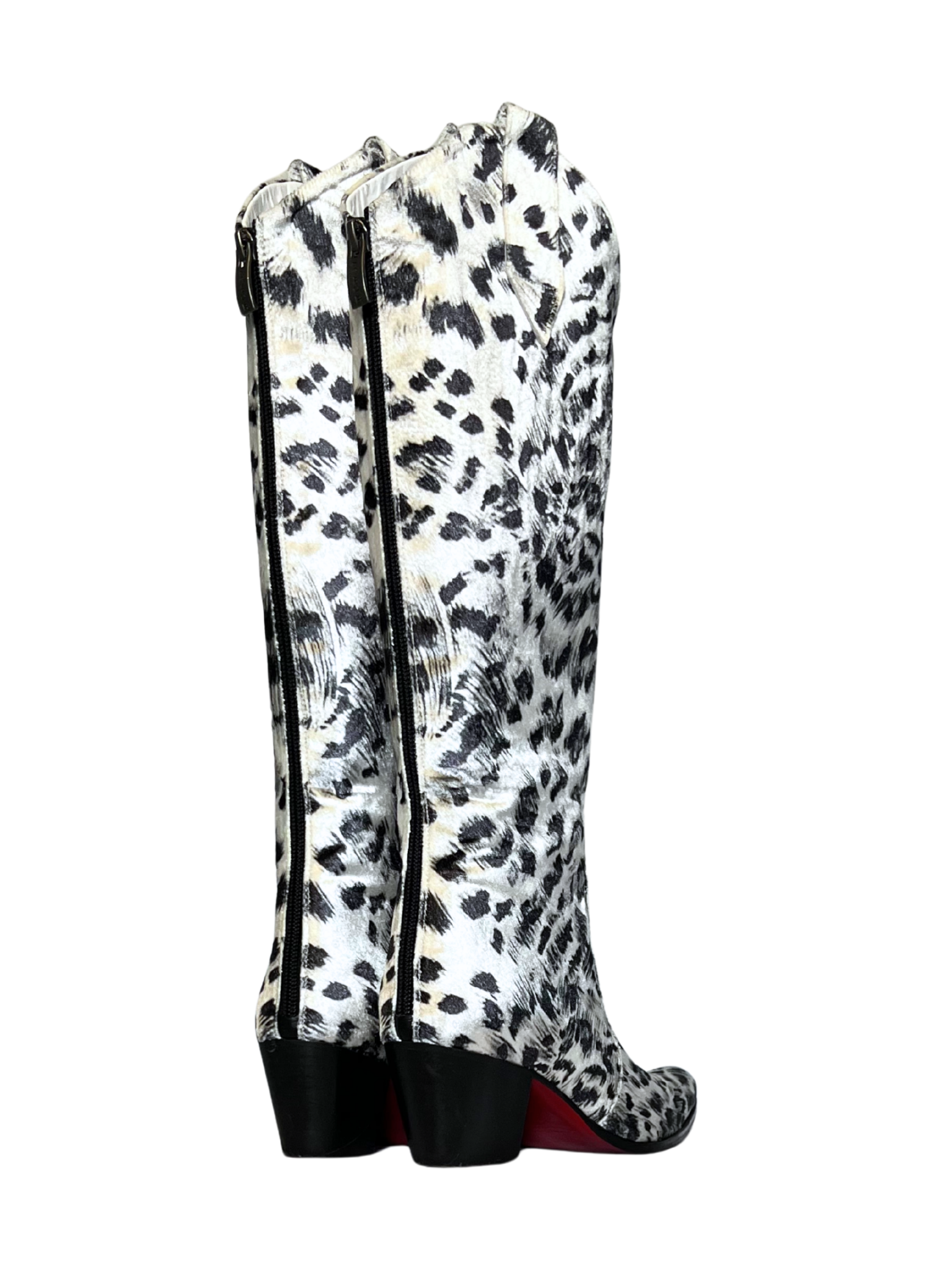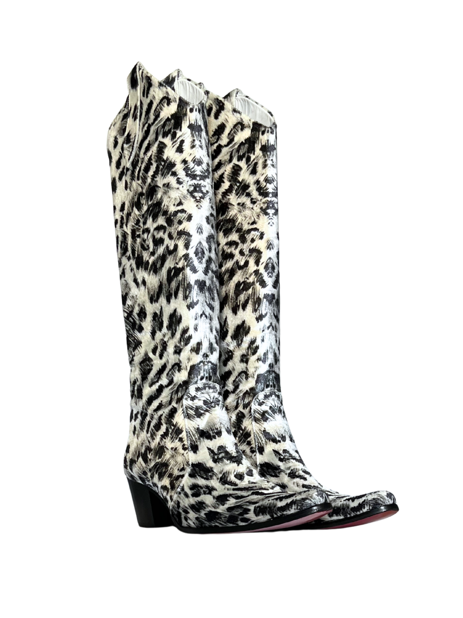 Exquisitely hand-crafted, the Vail V-Line Collection is your new favorite pair of boots! This stunning White & Black Leopard Design was selected from thousands of textiles by our team just for YOU!